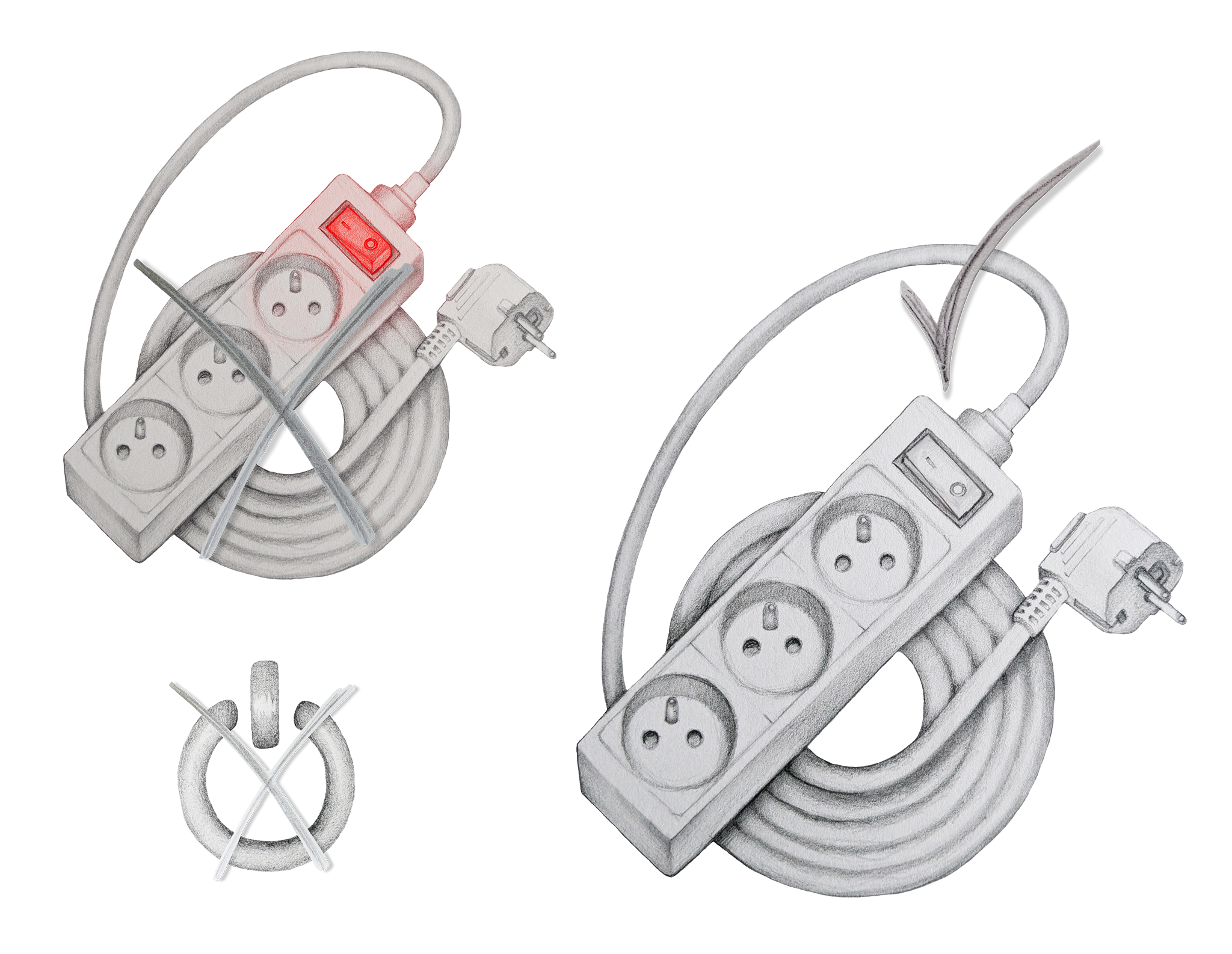 Neustálé vytahování šňůr ze zdi je nepohodlné a namáhavé pro ruce. Existuje ale elegantní řešení: Prodlužovačka s vypínačem.