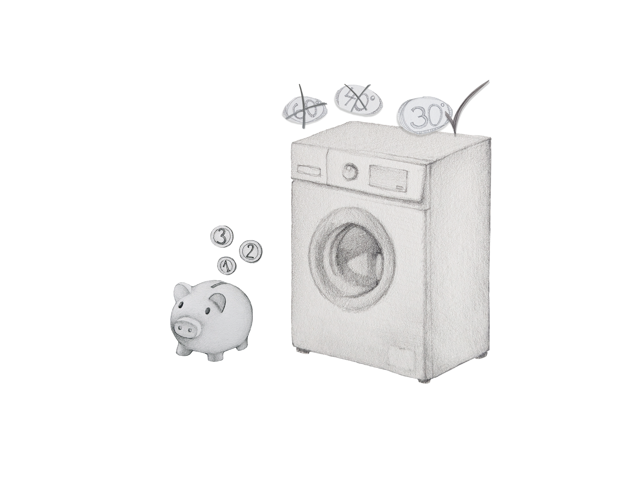 Úspora elektřiny: Rozdíl mezi praním na 60 °C a 30 °C je obrovský. Snížením teploty ušetříte při každém praní tolik proudu, že byste si za to mohli uvařit několik konvic čaje nebo kávy.